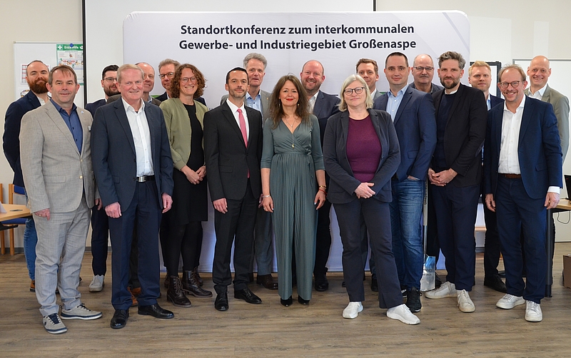 Neben den Kooperationspartnern waren auch die entsprechenden Ministerien hochrangig vertreten: Das Ministerium für Energie (MEKUN) mit Staatssekretär Joschka Knuth sowie das Ministerium für Inneres (MIKWS) mit Staatssekretär Sönke Schulz und das Ministerium für Wirtschaft (MWVATT) mit Oliver Kühl und Dr. Sebastian Wilkens (Referat für Wirtschafts- und Mittelstandspolitik) beteiligten sich an der Konferenz. Auch Malte Henschke-Kemper von Netzbetreiber TenneT und Steffen Bandelow von SH Netz saßen mit am Tisch. Nach der Unterzeichnung des Letters Of Intent sprachen sie gemeinsam mit weiteren Anwesenden über die zukünftige Vorgehensweise bei der Planung des 75 Hektar großen Gewerbe- und Industriegebiets in Großenaspe. Beide Staatssekretäre waren sich einig, dass Initiativen wie diese Kooperation auch aus Sicht der Landesplanung genau der richtige Weg seien, da gerade große Entwicklungen nur durch kommunale Zusammenarbeit nachhaltig gelingen können. Damit wurde ein klares Zeichen gesetzt, dass bei diesem Projekt nicht nur der Standort Großenaspe bedacht wird, sondern dass es sich hierbei auch um eine Chance für Schleswig-Holstein handelt, nicht nur Vorreiter in der Produktion von erneuerbarer Energie zu sein, sondern sie auch vor Ort zu nutzen.