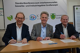 Großenaspe (pm) - Die Gemeinde Großenaspe, die Stadt Neumünster und der Kreis Segeberg haben entschieden, die Standortentwicklung in Großenaspe voranzutreiben. Im Rahmen einer Standortkonferenz unterzeichneten Bürgermeister Thorsten Klinger, Oberbürgermeister Tobias Bergmann und Landrat Jan Peter Schröder einen entsprechenden Letter of Intent.
