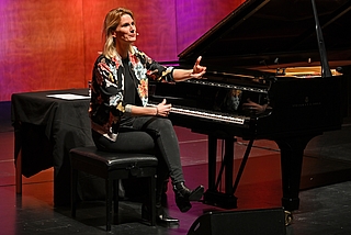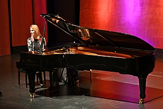 Die vom klassischen Konzertklavier und der Lied- und Literatur-Begleitung kommende, in Berlin und Südfrankreich lebende Kölnerin Lucy van Kuhl legte eine exzellente, lustige und musikalische Einlage hin… Ihrem musikalisch wie sprachlich bestechend solidem Handwerk, ihrer Bühnenpräsenz und der sichtbaren Begeisterung, mit der sie ihre Songs über unsere Überflussgesellschaft vortrug, fanden beim Publikum großen Anklang. Das Essen (Suppen und Fingerfoot) wurde auch gerne angenommen und rundete den Abend galant ab.