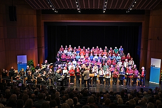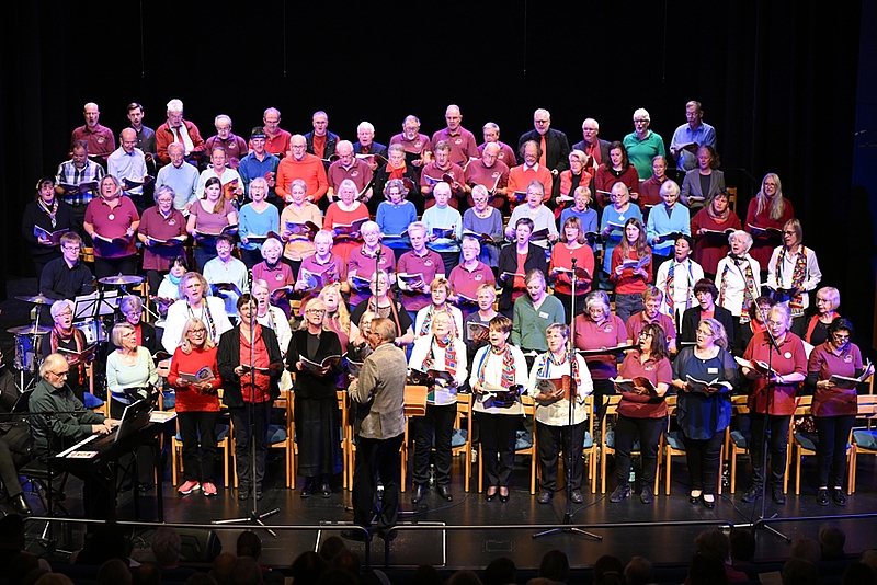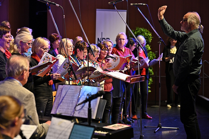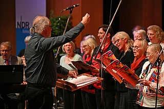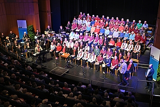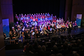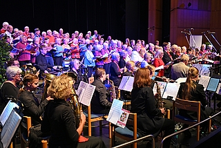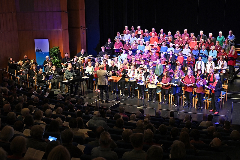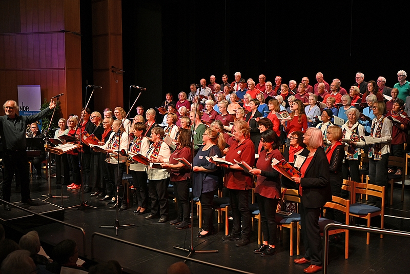 Neumünster (ger) - Mit über 100 Musikerinnen und Musiker aus lokalen Chören und Orchestern, fand am 3. Oktober in Theater in der Stadthalle Neumünster ein außergewöhnlicher Musikabend statt. Der bundesweiten Initiative „3. Oktober – Deutschland singt und klingt“ haben sich viele Städte angeschlossen. Um 19 Uhr ging es los mit dem Lied „Frieden auf dieser Welt“. Es folgten Ansprachen vom Citymanager Marc Hein, und der Neumünsteraner Stadtpräsidentin Anna-Katharina Schättiger. Moderiert wurde der Abend von Maja Herzbach vom NDR Welle Nord. Es folgten bekannte Lieder, wie Wind of Chance, über 7 Brücken, die Gedanken sind frei und anderen. Das Publikum sang bei diversen Beiträgen mit und genoss den wundervollen Abend. „Gemeinsam bekannte Lieder singen, die Kraft der Musik spüren und ein Zeichen für Einheit, Kraft, Frieden und Hoffnung setzen“… Das machte den Abend zu einem Erlebnis, die Message kam rüber!