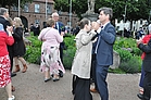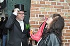 Beim Tanz um den Roland, der immer vor dem Kommers im Kaisersaal stattfindet, hatte der Wettergott zum Glück ein Einsehen mit der Festgesellschaft. Dort konnte sich auch die Gäste aus Polen aktiv einbringen, während Agatha Schuster aus Bad Bramstedt und Daniel Puchalski aus Polen kaum eine Chance hatten, das Geschehen aus dem Plattdeutschen ins Polnische zu übersetzen.