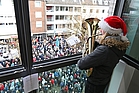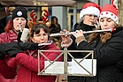 Diese und ähnliche Sätze hören wir sehr gerne – und wir freuen uns auch in diesem Jahr gemeinsam auf das Turmkonzert in der Innenstadt von Neumünster“, so Marc Hein vom Citymanagement. Traditionell begann das Konzert um 12:00 Uhr mit dem Öffnen der Fenster und dem Weihnachtslied „Alle Jahre wieder“, gespielt von den Holz- und Blechbläsern des Mädchen-Musikzugs Neumünster und des Blasorchesters Tungendorf. Aber… es gab einen neuen Standort: In diesem Jahr fand das Turmkonzert erstmals direkt vor der neuen Sparkasse Südholstein (ehemals Karstadt-Gebäude) statt. Dort erwartete die Zuschauer zusätzlich ein musikalisches Bühnenprogramm auf der LKW-Bühne direkt am Gebäude. Bereits ab 11:00 Uhr wartete im Sparkassen-Weihnachtsdorf eine kleine Überraschung auf die Kinder. Uns ist zu Ohren gekommen, dass dort jemand ganz Besonderes eine Pause einlegt und Süßigkeiten verteilt… Für das leibliche Wohl wurde ebenfalls gesorgt: Dafür standen Glühweinstände sowie ein Schankwagen des Rotary Clubs bereit. Auch Waffeln wurden gereicht. Die gemeinnützige Organisation aus Neumünster sammelte Spenden für bedürftige Vereine. Wie so oft gab sich das norddeutsche Wetter klassisch grau mit Sonne, aber viele Nordnasen haben das gepflegt ignoriert… Trotzdem waren viele Zuhörer zugegen und genossen die heimelige Stimmung.