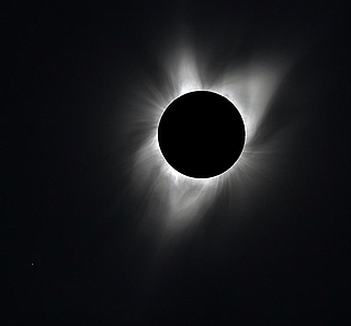 In der Totalitätszone in Nordspanien verschwindet die Sonne komplett hinter dem Mond. Für wenige Minuten wird die Korona, die äußere Atmosphäre der Sonne, sichtbar. © Marco Ludwig und S. Bruns