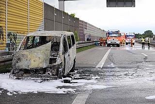 Gegen 15.20 Uhr wurde die Freiwillige Feuerwehr Itzehoe zwischen die Anschlussstellen Itzehoe-Mitte und Itzehoe-Süd zu einem brennenden Fahrzeug alarmiert. Als die Kräfte vor Ort eintrafen, stand ein Mercedes Vito bereits lichterloh in Flammen. Der Fahrer hatte sich bereits rechtzeitig in Sicherheit bringen können, so die Polizei.