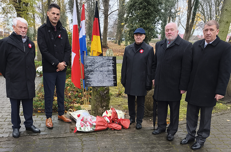 Bei dem Besuch einer sechsköpfigen Delegation zum Nationalfeiertag zum Gedenken an die Wiedererlangung der Unabhängigkeit Polens am 11. November 1918 wurde ein besonderes Zeichen der Versöhnung zwischen den beiden Staaten gesetzt. Wie seit Jahrzehnten guter Brauch, wurden unter Beteiligung der deutschen Delegation Blumen und Kränze an einer Gedenkstätte für die Gefallenen beider Nationen auf dem Friedhof niedergelegt. Als Besonderheit in diesem Jahr stand die Enthüllung einer Gedenktafel in deutscher und polnischer Sprache im Mittelpunkt. Sie soll erinnern an das, was war aber nie wieder geschehen darf. Der Text fordert unter anderem dazu auf, an dem festzuhalten, was verbindet und das Wort, das Miteinander und den Frieden zu pflegen für die, die nicht mehr sprechen können und die folgenden Generationen. Vollzogen wurde dieser besondere Akt in Anwesenheit der ehemaligen Drawskoer Bürgermeister Zbigniew Jakomulski und Zbigniew Ptak sowie auf deutscher Seite der beiden Ehrenbürger Arnold Helmcke und Agata Schuster.