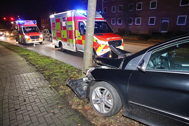 Itzehoe (fs) – Eine Frau ist am Samstagabend (13. Dezember) in Itzehoe mit ihren beiden Kindern gegen einen Straßenbaum geprallt. Die 47-Jährige soll zuvor am Steuer ihres Mercedes das Bewusstsein verloren haben.