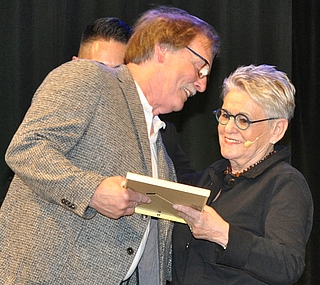 Felix Carl, der das Ehrenamt bei seiner Begrüßung als tragende Säule der Gesellschaft bezeichnete, ohne das vieles nicht möglich wäre, bedankte sichausdrücklich bei dem Team vom „Amt. Zum Glück.“. Seit 14 Uhr hatten diese mit den organisatorischen Vorbereitungen für den Abend begonnen und damit wesentlich zum Gelingen beigetragen. Und nicht zu vergessen Peter T. Ockenden, der wie immer und auch ehrenamtlich dafür sorgt, dass die Technik im Kurhaustheater reibungslos funktioniert.