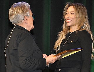 Im ersten Teil, für das soziale Engagement, kamen unter dem Beifall des Publikums Vertreter der Ev.-Luth. Kirchengemeinde, vom Team der Freiwilligenbörse, vom Familien- und Integrationszentrum der Lebenshilfe, von „Tischlein deck Dich“, den „Grünen Damen“ des Klinikums, des Sprach-Cafés des Familienzentrums, des DRK-Shops sowie der Versichertenälteste der Deutschen Rentenversicherung Nord auf die Bühne. Alle erhielten Urkunden und Geschenke. Und für jede Einrichtung hatten Annegret Mißfeldt und Felix Carl ein paar erklärende und lobende Worte zurechtgelegt, die deren ehrenamtliche Arbeit umrissen.