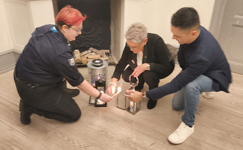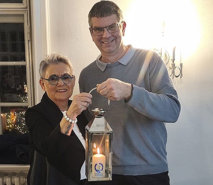 Wie immer auf eigene Kosten, brachte Ann-Sophie das Licht in einem besonders gesicherten Behälter per Bahn nach Bad Bramstedt und übergab es im Schloss an Bürgervorsteherin Annegret Mißfeldt und Bürgermeister Felix Carl. Damit auch Bad Bramstedter Bürger sich an diesem Friedenslicht bedienen und sich daran eine Kerze anzünden können, ist es noch bis kommenden Dienstag während der laufenden Geschäftszeiten im Foyer des Rathauses zugänglich.