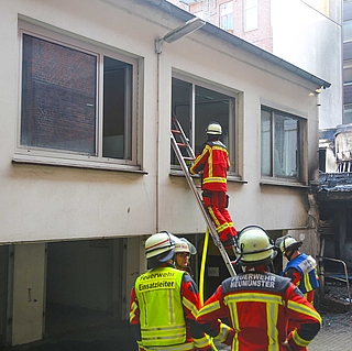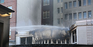 Neumünster (nyf) - Am vergangenen Samstag um 16:55 Uhr meldeten Anwohner über die Notrufnummer 112 eine starke Rauchentwicklung in der Holstenstraße in der Brandruine. Sofort wurden die Berufsfeuerwehr Neumünster und die Freiwillige Feuerwehr Mitte alarmiert. Bei Ankunft der Einsatzkräfte war Rauch zu sehen und ein starker Brandgeruch wahrnehmbar. Da das einsturzgefährdete Objekt nicht betreten werden konnte, wurde ein benachbartes, nicht einsturzgefährdetes Gebäude im hinteren Bereich der Brandruine über eine Steckleiter betreten und das Feuer durch ein Fenster bekämpft. Eine Wärmebildkamera kam zum Einsatz, um mögliche Glutnester zu lokalisieren. Während des Einsatzes wurde die Drohneneinheit alarmiert, da die Drohne eine bessere Sicht ohne Betreten des Gebäudes ermöglicht. Gegen 19:15 Uhr kehrte der Löschzug der Berufsfeuerwehr Neumünster zurück, um die Grundsicherung der Stadt zu gewährleisten. Die Freiwillige Feuerwehr und die Drohneneinheit überwachen weiterhin das Gebäude. Wie lange der Einsatz noch dauern wird, ist völlig unklar. Die Außentemperatur von 29 Grad erschwerten den Einsatz. Viele Passanten vom Großflecken beobachteten interessiert das Geschehen, behinderten jedoch nicht die Löscharbeiten.