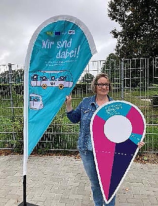 Gemeinsam präsentieren sie sogenannte „Wandelorte“ – Orte, an denen Mobilität gelebt wird. Sie zeigen Veränderungen: Ob barrierefreie Bushaltestellen, neue Radverkehrskonzepte oder innovative Nahverkehrsangebote. Diese „Wandelorte“ werden im gesamten Land mit großen Pinnadeln markiert, im Foto festgehalten und auf der Homepage und in den sozialen Medien hochgeladen und stehen symbolisch für Fortschritt und Engagement vor Ort. Der Kreis Steinburg bietet Beachflags an, die ausgeliehen werden können, um diesen Wandelort zu markieren.