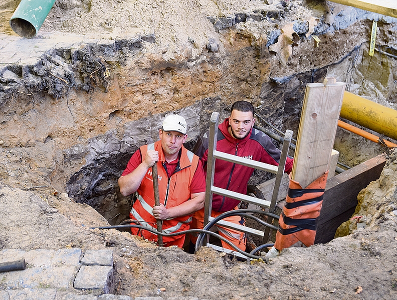 Doch als Maschinist Sönke Dammers aus dem Bagger stieg, stutzte er. „Ich erkannte, dass es ein Schädel ist.“ Der Unterkiefer fehlte, aber der Rest war gut erhalten. Nach und nach trat ein komplettes Skelett zutage. Der Vorarbeiter der Firma HMH Straßen- und Tiefbau ordnete sofort einen Baustopp an. „Das ist meldepflichtig.“ Dammers informierte die Stadt, in deren Auftrag die Firma die sogenannte Suchschachtung aushob. Dabei erkunden die Arbeiter, welche Kabel und Leitungen unter dem Pflaster verlaufen, um das Setzen versenkbarer Poller vorzubereiten.