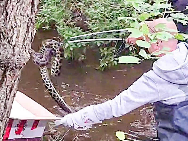 Kreis Pinneberg (jhf) Sie erwürgt Vögel, Reptilien, Amphibien, Fische und Säugetiere. Eine etwa drei Meter lange Gelbe Anakonda tauchte am Sonntag im Bachlauf der Gronau in Quickborn auf. Einsatzkräfte der Freiwilligen Feuerwehr Quickborn organisierten die Rettung der südamerikanischen Würgeschlange. "Ein sachdienlicher Helfer konnte das Tier fachgerecht einfangen", berichtete die Polizei. Die Beamten gehen davon aus, dass ein Unbekannter das Tier aussetzte. Sie ermitteln wegen einer möglichen Straftat nach dem Tierschutzgesetz und bitten Zeugen um Hinweise unter Telefon 04106 63000.