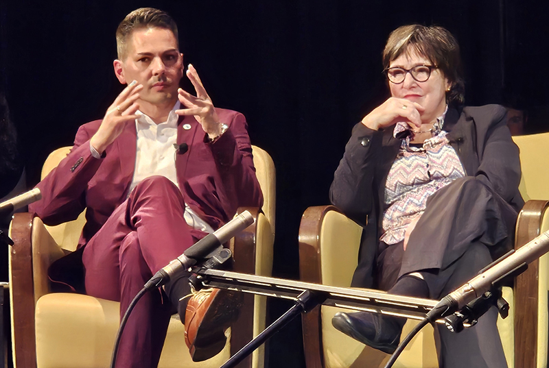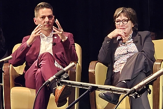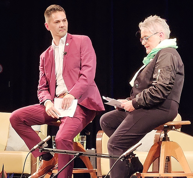 Die Moderatorin Susanne Kluge-Paustian beim Interview mit Arved Fuchs