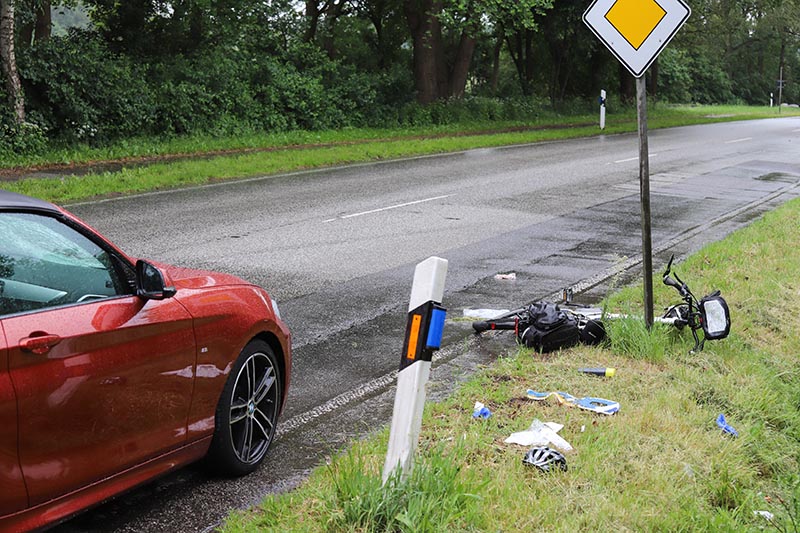 Die 52-jährige Fahrerin konnte einen Zusammenstoß nicht mehr verhindern, blieb aber unverletzt. Der Mann hingegen zog sich infolge des Unfalls multiple Verletzungen zu. Aufgrund der Schwere der Verletzungen forderten die Rettungskräfte einen Rettungshubschrauber an, der den Schwerverletzten in die Uniklinik nach Kiel transportierte. Hier erlag er seinen Verletzungen.