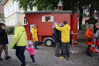Itzehoe (anz) – Die rote Schäferwagenkirche war im letzten Jahr ein Hingucker. Am Rande des Steinburger Abendmarktes hatte Propst Steffen Paar sie vor dem vor dem Propstenhaus aufgestellt. Menschen standen davor oder saßen drinnen und ab und an hörte man die kleine Glocke fröhlich läuten.