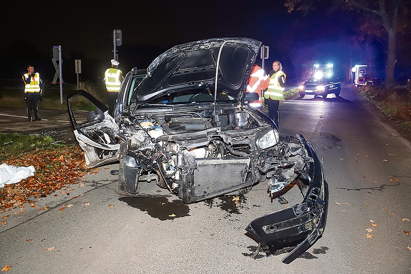 Klein Offenseth-Sparrieshoop (jhf) Schwerer Verkehrsunfall auf der AKN-Strecke zwischen Elmshorn und Barmstedt: Auf dem Bahnübergang Waldstraße in Klein Offenseth-Sparrieshoop wurde am Montag gegen 18.40 Uhr ein VW Golf von einem Zug erfasst. Wie die Polizei mitteilte, wurde der 17-jährige Beifahrer leicht verletzt. Am Auto entstand ein Totalschaden. Die Bahnstrecke war für mehr als zwei Stunden gesperrt. Zunächst wurde befürchtet, dass der 17-Jährige in Lebensgefahr schwebte. Erst nach einer Untersuchung in einer Klinik kam die Entwarnung. „Somit wird nunmehr von leichten Verletzungen ausgegangen“, teilte ein Polizeisprecher mit.