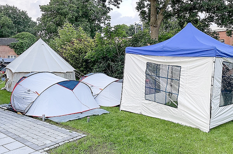 Die Männer haben Glück: In dem Internetportal "Kleinanzeigen" finden sie eine Familie, die eine Unterkunft in Vaale anbietet - etwa fünf Kilometer oder einen einstündigen Fußmarsch vom Festivalgelände entfernt. Timon Hamer schwärmt: "Die Leute hier sind sehr hilfsbereit." Die Kamener schlugen ihre Zelte im Garten der Familie auf, wanderten am Abend nach Wacken und fuhren mit dem Taxi wieder zurück. Am Festivalgelände seien sämtliche Parkpätze gesperrt worden. Es sei nicht möglich, von der Unterkunft mit dem Auto hinzufahren. Die Stimmung ist trotzdem gut. "Die Nacht war super und die Leute, bei denen wir campen, sind extrem nett. Es wird wirklich alles versucht, damit wir uns hier wohlfühlen", berichtet Timon Hamer am nächsten Morgen, 2. August.
