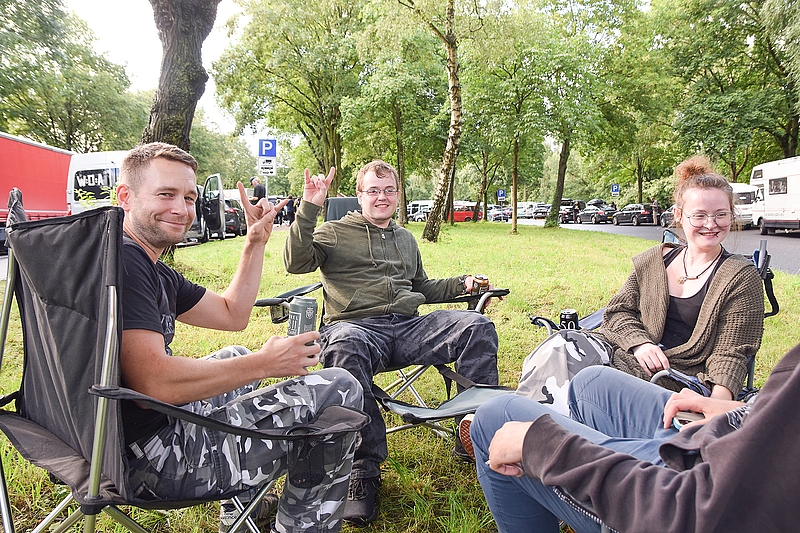 Kreis Pinneberg (jhf) Ein Auto nach dem anderen rollt auf den Rastplatz Forst Rantzau an der Autobahn 23. Freie Parkplätze sind kaum zu finden. Autos, Vans, Wohnmobile und Wohnwagengespanne stehen dicht an dicht. Den Nummernschildern nach kommen sie aus vielen Ecken Deutschlands, aus Österreich, Frankreich und Großbritannien. Am Abend vor Beginn des Wacken Open Air (W.O.A.)-Festivals, 1. August 2023, sammeln sich die Fans neben der Autobahn. Einige sitzen auf Campingstühlen im Gras. Jemand hat einen Pavillon aufgestellt. An Campern sind Vorzelte aufgespannt. Menschen stehen in Gruppen zusammen und beratschlagen sich. Die Nachricht der Veranstalter, die sie gegen 17 Uhr auf ihrem Instagram-Kanal wackenopenair.official veröffentlichten, ist in aller Munde: Wegen der starken Regenfälle werden bis zum Festvial-Ende am 5. August keine Fahrzeuge mehr auf das vermatschte Festivalgelände gelassen.