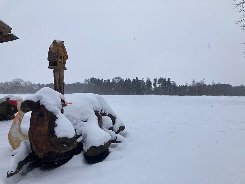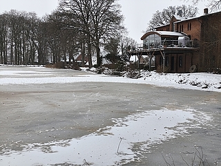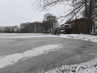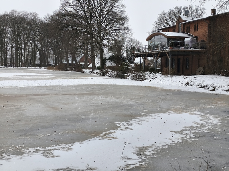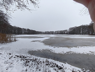 Unter einen dünnen Eisdecke, leicht betäubt mit Schnee präsentiert sich der Weddelbrooker See besonders idyllisch.