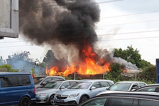 Menschen in der näheren Umgebung werden gebeten, wegen der starken Rauchentwicklung im Bereich der Holstenhallen, der Gartenstadt sowie in Tungendorf und Einfeld Fenster und Türen geschlossen zu halten.